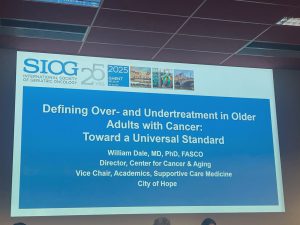 One of the most anticipated sessions was the Plenary on Defining and Preventing Overtreatment and Undertreatment in Older Adults with Cancer, featuring CARG’s own Dr. William Dale, who presented “Defining over- and undertreatment in older adults with cancer: toward a universal standard.” This session underscored the urgent need for a universal framework to guide treatment decisions. Complementing this perspective, patient advocate Ann Pennella delivered a powerful talk on “What ‘overtreatment’ and ‘undertreatment’ means to patients, and how oncology teams can work with patients to achieve the ‘right treatment.'” Their insights highlighted the importance of aligning clinical decisions with patient values – a theme echoed throughout the conference.