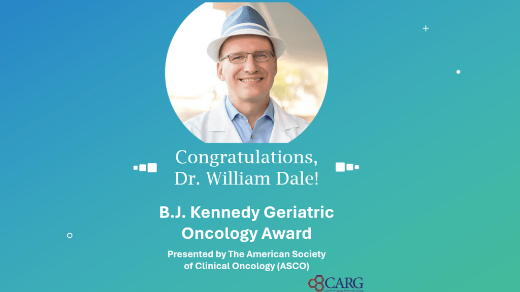 We are thrilled to extend our heartfelt congratulations to Dr. William Dale for his exceptional achievement in winning the esteemed 2024 ASCO B.J. Kennedy Geriatric Oncology Award. This prestigious recognition is a testament to Dr. Dale’s unwavering dedication and profound impact in the field of geriatric oncology. Dr. Dale’s contribution to the field of geriatric oncology has been nothing short of extraordinary. Dr. Dale is an internationally recognized leader in cancer and aging, supportive care medicine, cancer survivorship and medical decision-making. As an internist, geriatrician, and supportive care medicine physician with a doctorate in health policy, Dale has devoted his career to improving and optimizing the care for older adults with cancer and other diseases. Over the course of his career, Dr. Dale has tirelessly worked to improve the lives of elderly cancer patients through his compassionate approach to care and has been an advocate for personalized and patient-centered treatments. His innovative studies have shed light on the unique challenges faced by older adults with cancer, leading to a better understanding of their specific needs and the development of tailored interventions.