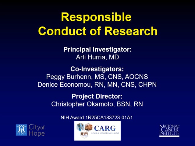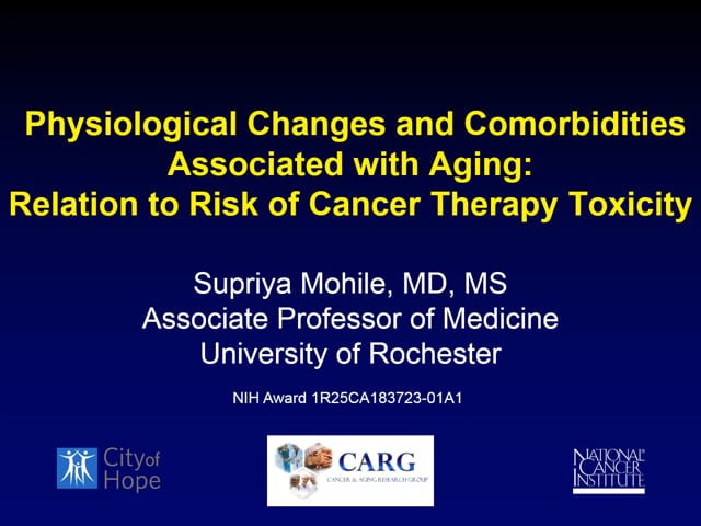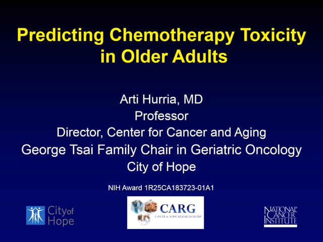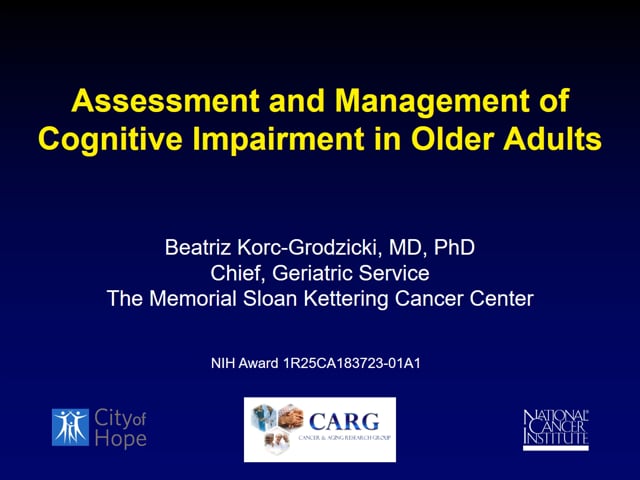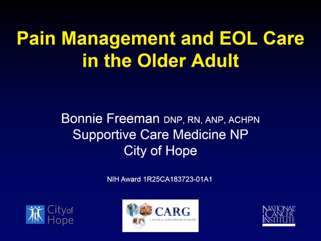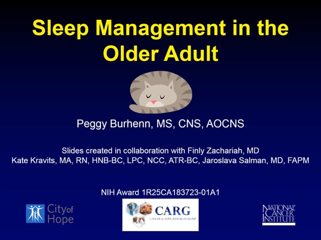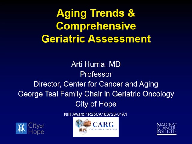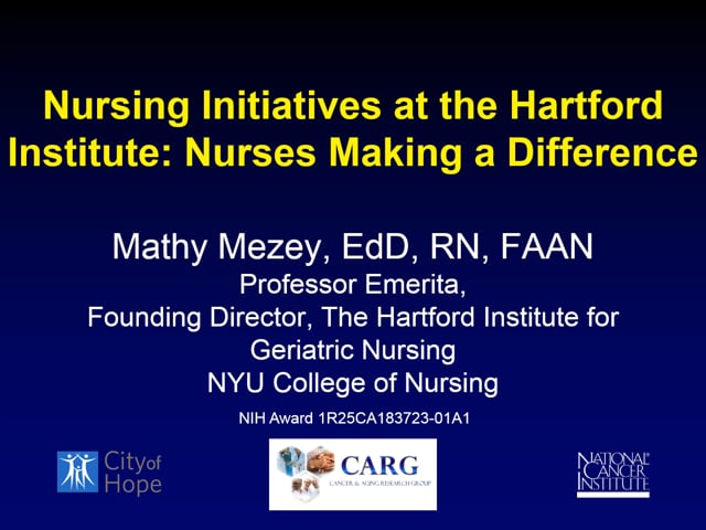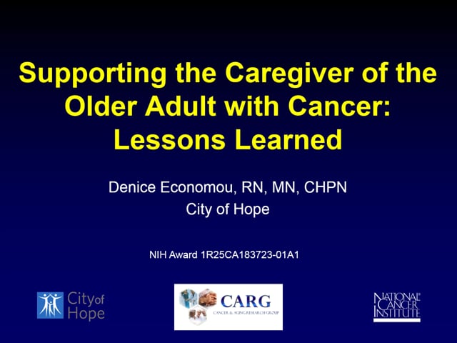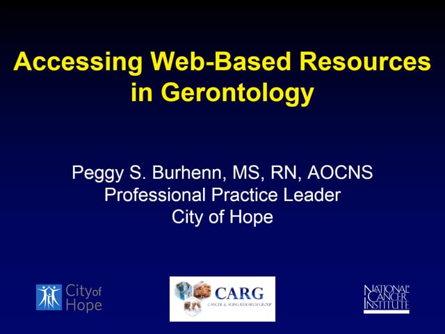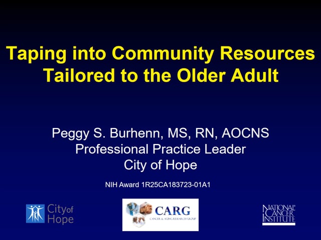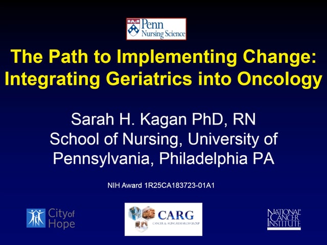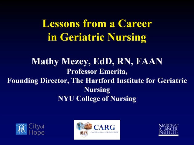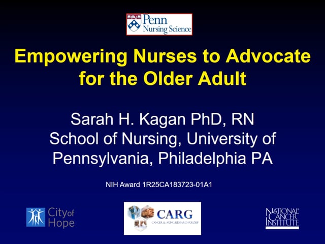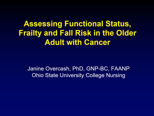 These presentations are from the Geriatric Oncology Workshop (GrOW) series held annually from 2016 to 2019.  This geriatric oncology curriculum was developed for oncology nurses and funded by the NIH R25 CA183723.