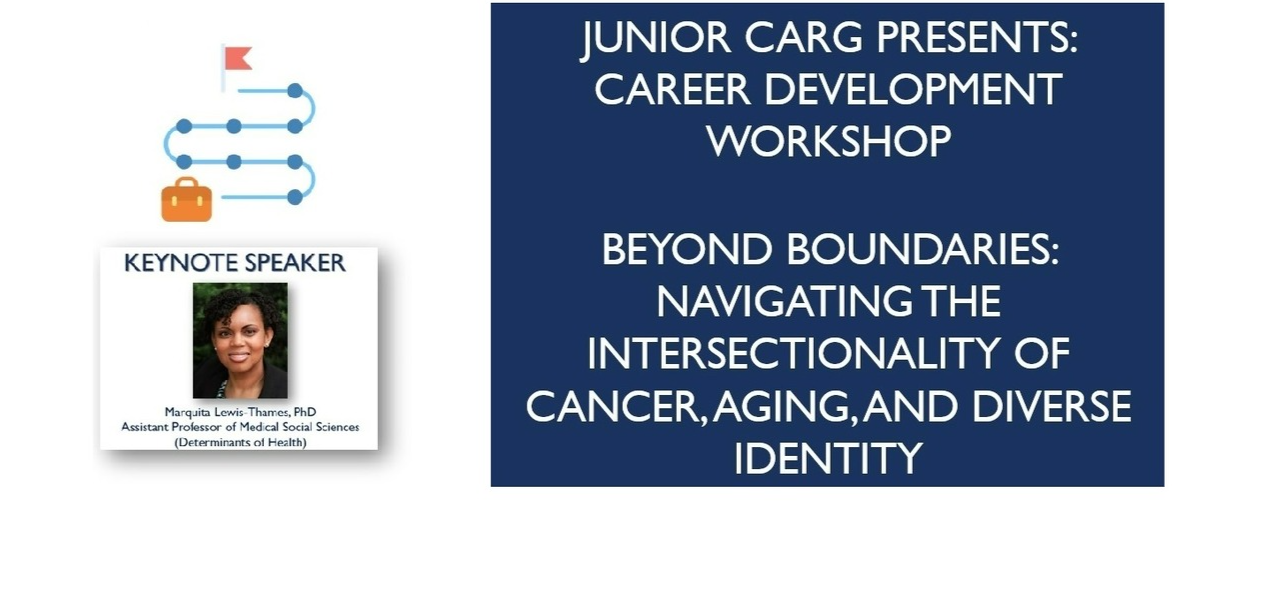 Sponsored by the Junior CARG Co-chairs, Drs. Nikesha Gilmore and Shakira Grant, the workshop nurtures early-stage researchers in geriatric oncology and fosters a collective identity and cohesiveness among CARG investigators. The 1.5-hour workshop included a Keynote presentation, Q&A, and a breakout session focused on Specific Aims Review, Specific Aims Q&A, Transition from Early to Mid-career, and Resilience and Work/Life Balance.