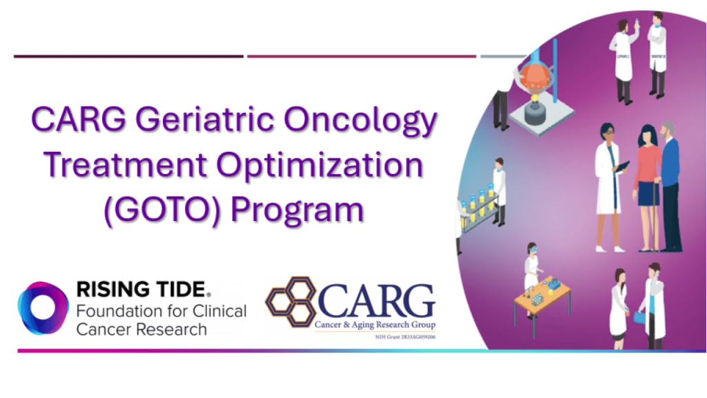 The CARG GOTO program supported by the Rising Tide Foundation for Clinical Cancer Research and City of Hope, aims to address knowledge gaps in cancer treatment for older adults. Click here to learn more about the CARG GOTO research studies.